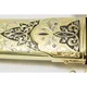 Клинок, изготовленный из высококачественной стали, обладает безупречной геометрии и долговечностью. Рукоять, выполненная из ценного дерева, приятно ощущается в руке, а ножны, покрытые золотом 10 микрон, добавляют изделию неповторимый блеск и элегантность.