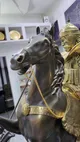 Статуя установлена на постамент из натурального змеевика – камня, известного своей исключительной красотой и прочностью. Постамент украшен скульптурами солдат разных эпох, придавая композиции глубину и историческую значимость. В центре постамента – массивные часы с механическим заводом, позволяющие ощутить ритм времени, как символ вашего времени и успеха.